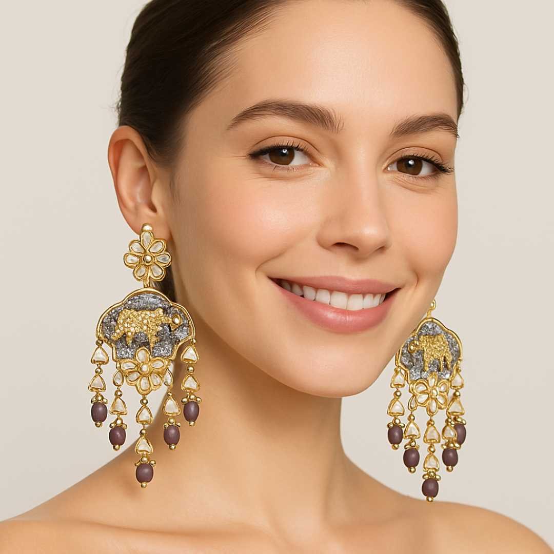 Be the first to review “Elephant Motif Kundan Dangler Earrings”
