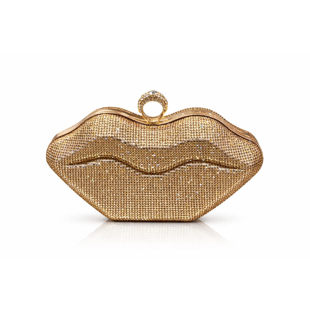 Golden Rhinestone Lips Clutch Bag