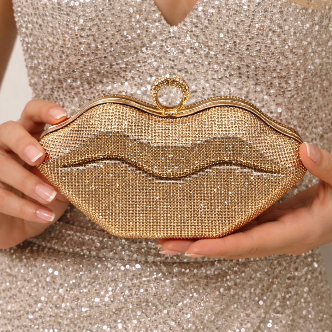 The Golden Rhinestone Lips Clutch Bag is a stunning masterpiece that combines elegance with a playful twist. Its iconic lip-shaped design, finished in a shimmering golden hue, ensures you’ll capture attention wherever you go. Perfect for adding a touch of glam to your evening attire or as a bold statement piece for special occasions.