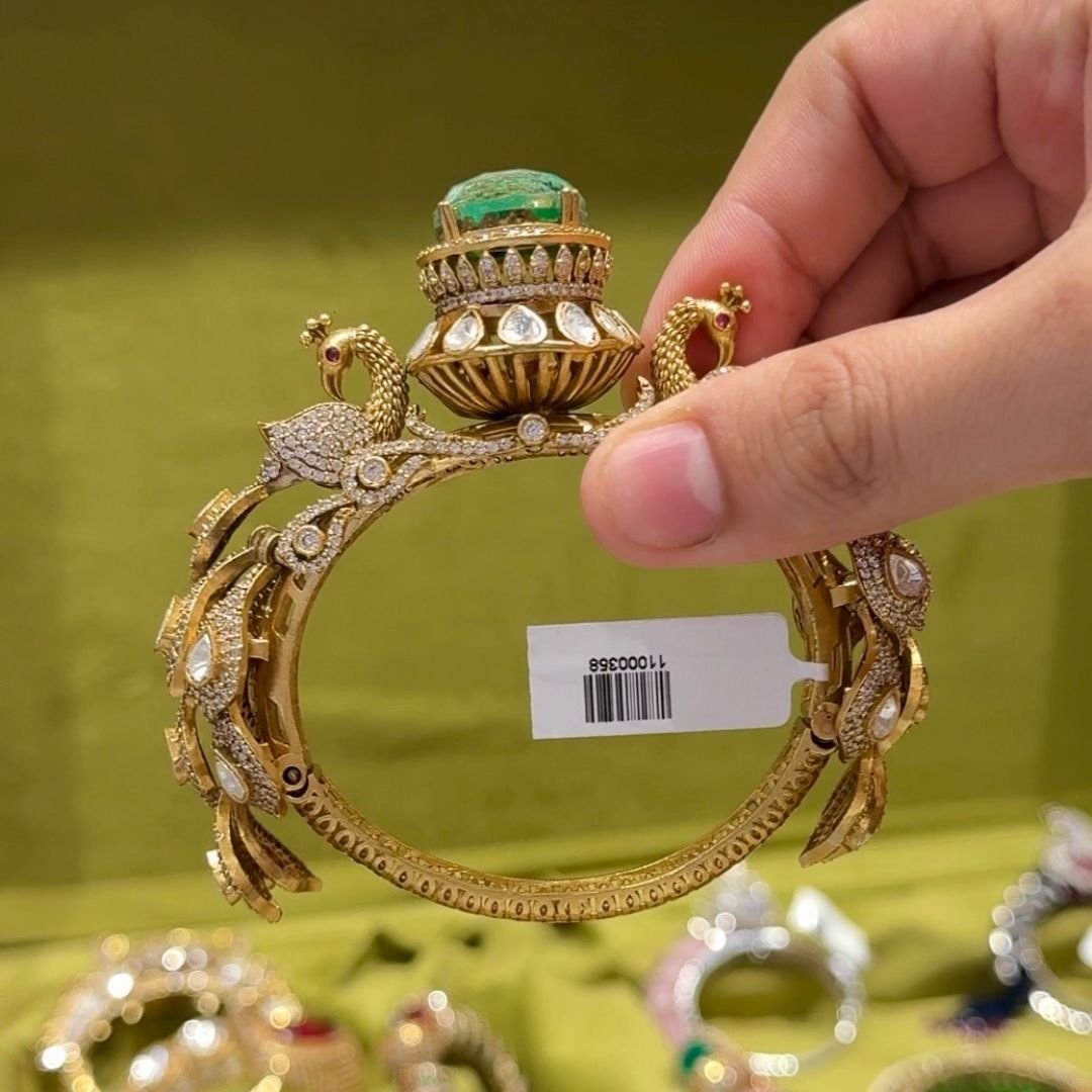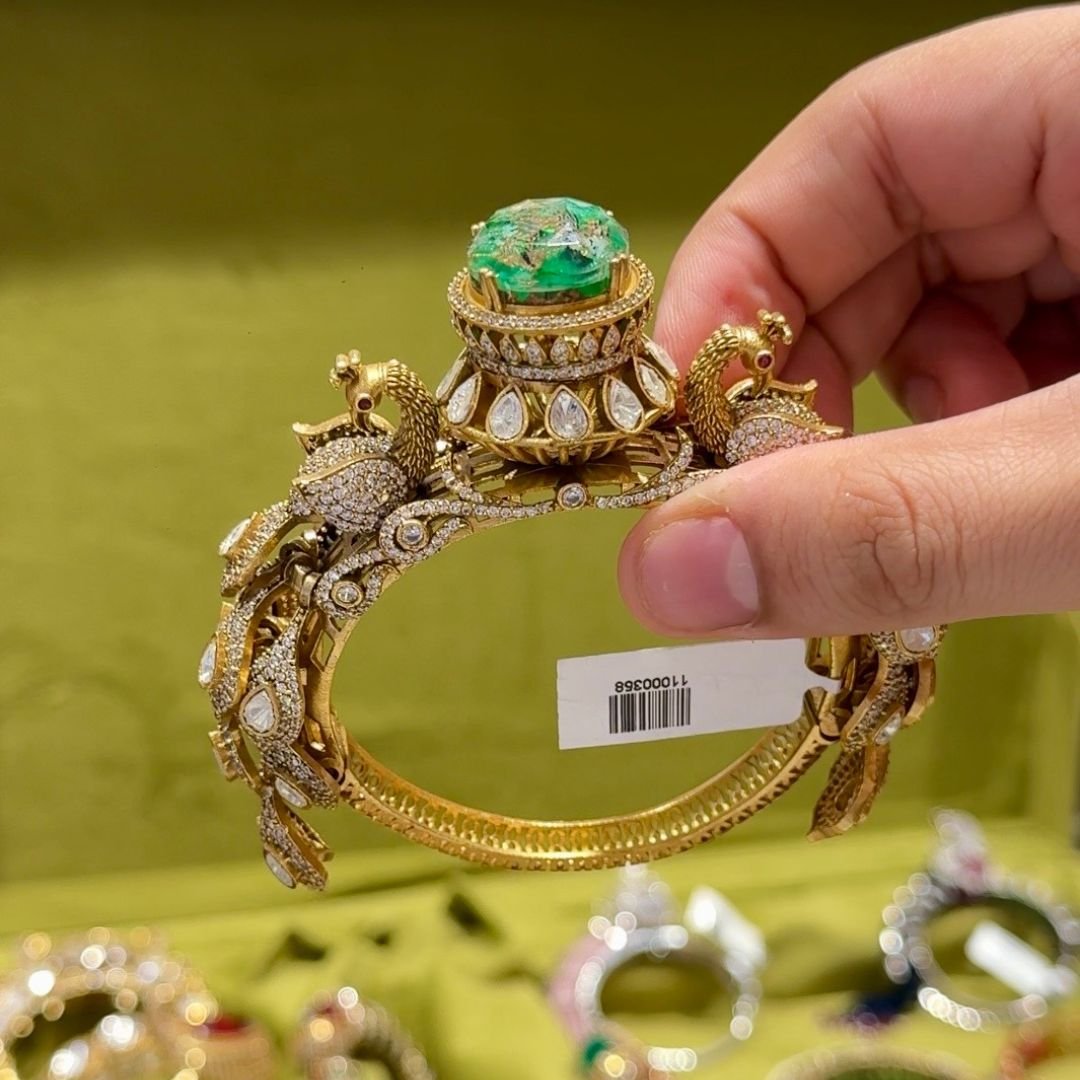Experience Timeless Grace with the Mayura Ratna Emerald Kada Bracelet