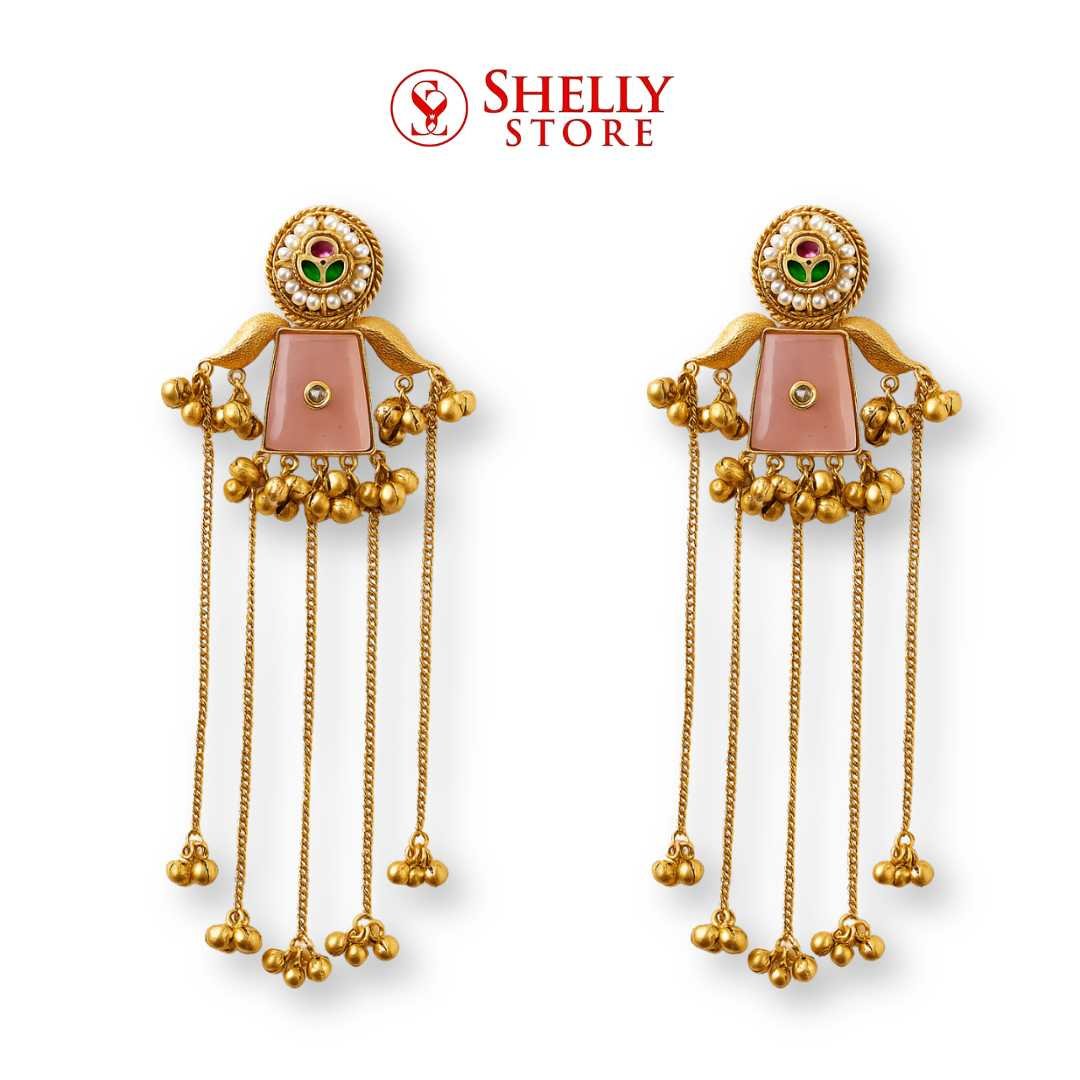 Be the first to review “Pink Stone Drop Chain Earrings”