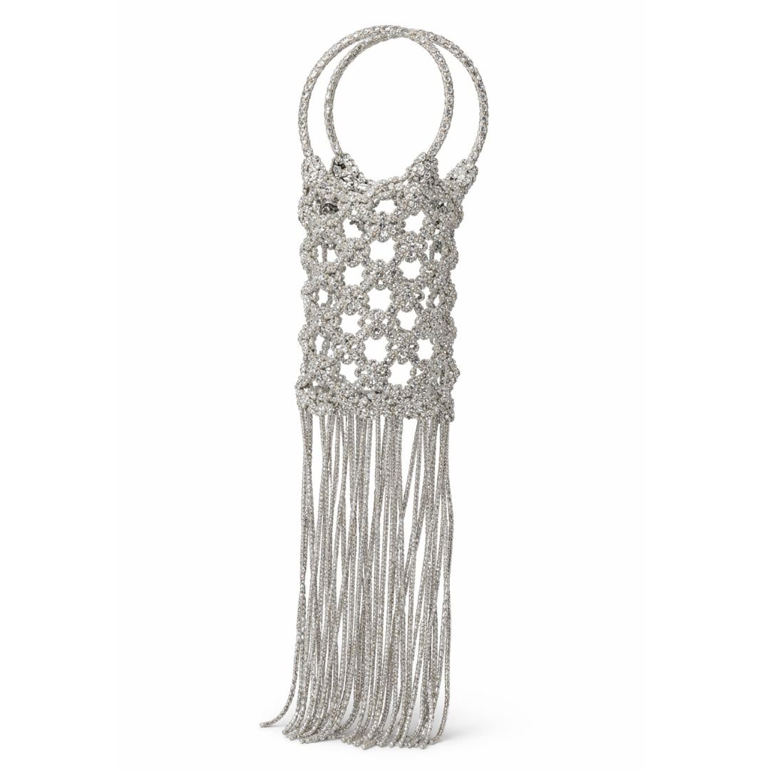 Upgrade your accessory collection with the Rhinestone Tassels Mobile Purse in stunning silver. This purse combines style and versatility, making it a perfect companion for both casual outings and glamorous events. The shimmering rhinestones and graceful tassels add a sophisticated touch of luxury to your ensemble.