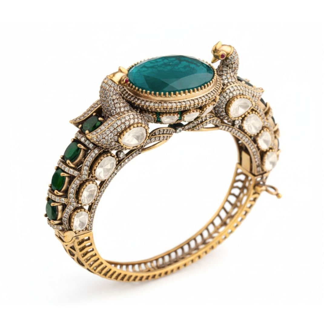 Victorian Polish Peacock Empress Kada Bracelet – Emerald